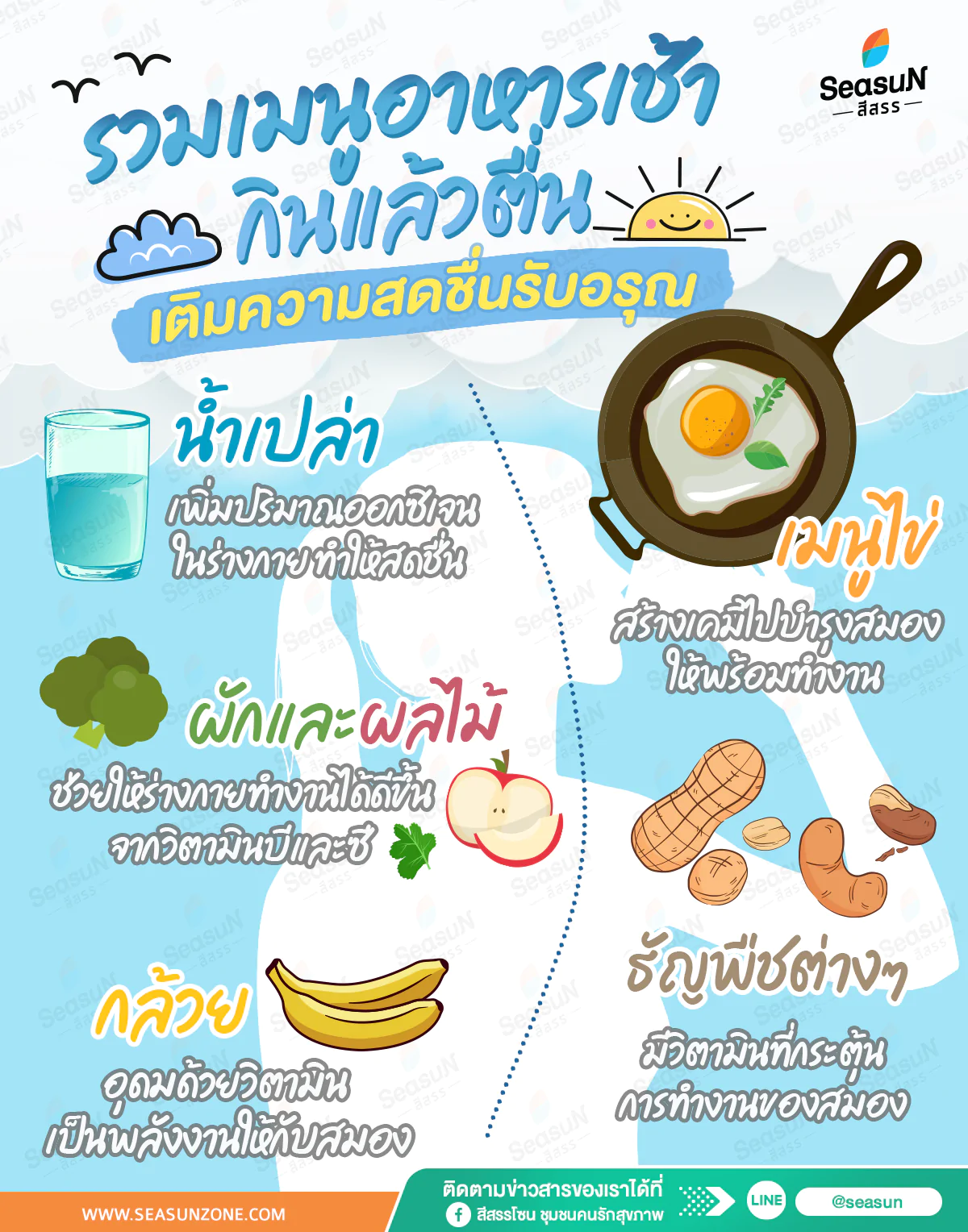 การทานอาหารมื้อเช้า นอกจากเป็นการเติมพลังให้กับร่างกายหลังจากอดอาหารมาทั้งคืนแล้ว ยังช่วยเพิ่มความจำ และลดความเสี่ยงการเกิดหลากหลายโรคได้อีกด้วย