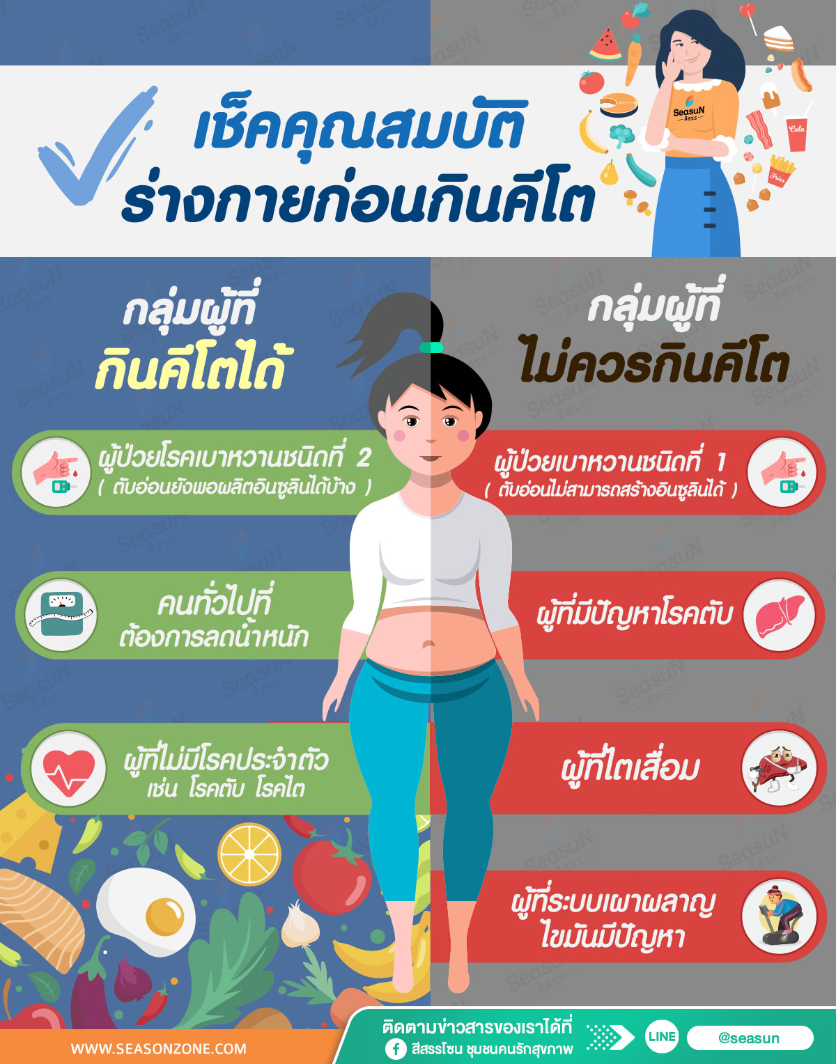 ลองมาเช็คดูก่อนค่ะว่าคุณอยู่ในกลุ่มไหนและควรกินคีโตหรือไม่? จะได้เริ่มทานคีโตได้อย่างมั่นใจ