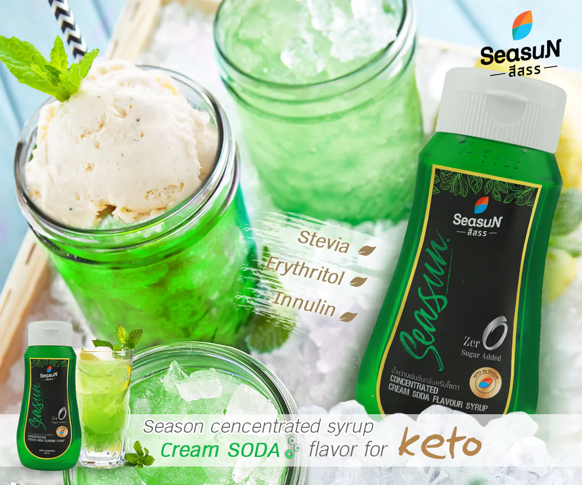Sugar Free Syrup Cream Soda Flavour, Keto formula by Seasunzone is specially created for Keto people. Selected high-quality ingredients such as stevia, erythritol, and Inulin. All three extracts do not give energy but give a mellow sweetness. It can be used for cooking, desserts, and beverages without losing the taste.