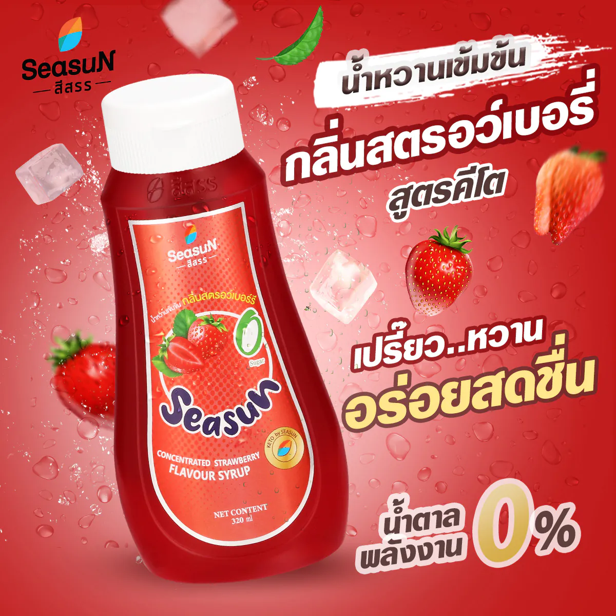 ไซรัปหญ้าหวานกลิ่นสตอเบอรี่ สูตรคีโตตราสีสรร ขนาด 320ml