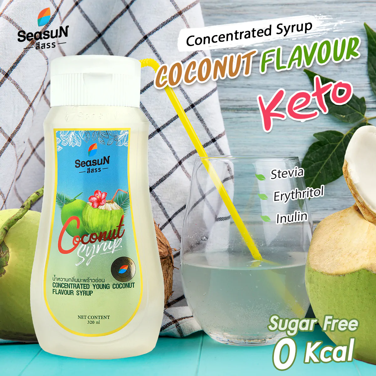 Sugar Free Syrup coconut Flavour Keto syrup, Keto formula by Seasunzone is specially created for Keto people. Selected high-quality ingredients such as stevia, erythritol, and Inulin. All three extracts do not give energy but give a mellow sweetness. It can be used for cooking, desserts, and beverages without losing the taste.