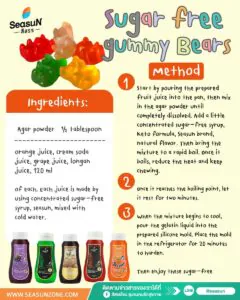 Sugar Free gummy Bears Ingredients: Agar powder ½ Tablespoon orange juice, cream soda juice, grape...